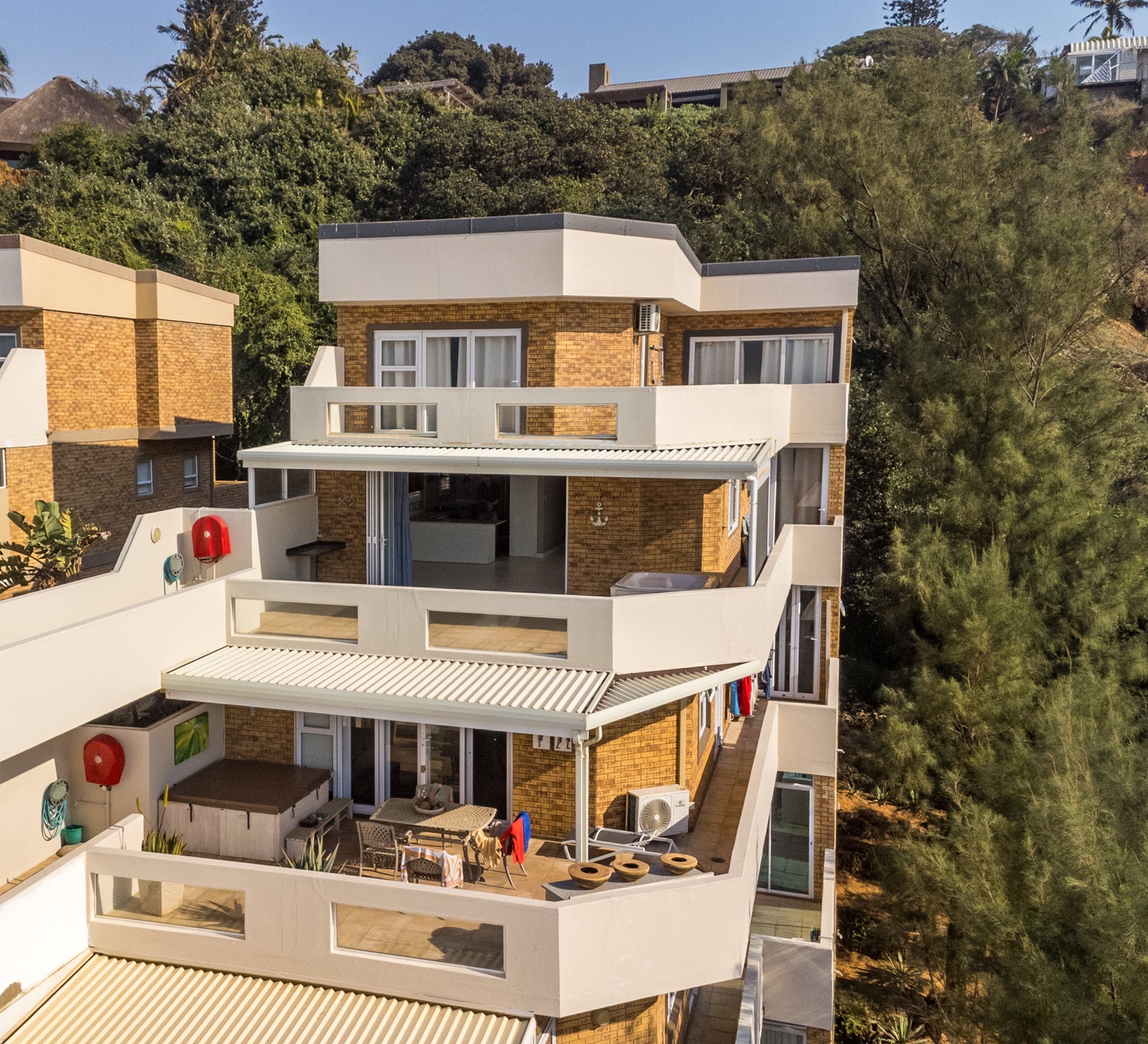 Features include stackable doors for free-flowing indoor-outdoor living spaces, a private Jacuzzi on the patio, outdoor shower, two store rooms, separate laundry, back-up inverter power and WiFi router on every floor and a double garage – an exception for a beachfront property in this prime location. In addition, the building exterior is currently being repainted and waterproofed so the apartment is move-in ready with no expenses looming.