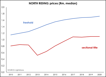 North Riding and Johannesburg North attract value seeking buyers because these are growing suburbs where property prices have shown consistent growth over a 10-year period, says Pam Golding Properties (see chart below). In addition, they offer a wide range of properties from sectional title apartments to clusters and freestanding homes and suit all budgets. There are also a number of excellent schools, shopping centres, healthcare facilities and hospitality venues in these areas.