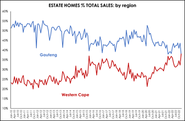 Says Dr Golding: “Statistics indicate that the Western Cape has become an increasingly important region in terms of estate sales, with the periods of growing estate sales in the region coinciding with the two periods of semigration – the first from 2013 to 2016 and the second from 2020 to date. This could reflect the preference of many buyers from Gauteng for estate living. As a result, the influx of older, more affluent home buyers from the rest of the country into the Western Cape during the current wave of semigration, could potentially result in a marked increase in estate sales.