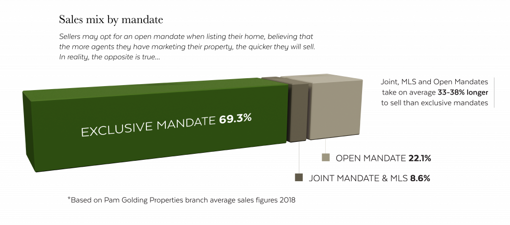 2-3 weeks faster) and the higher the achieved selling price will be. An exclusive mandate creates a platform of competition between buyers competing for the purchase of your property, placing you in an ideal negotiating position.