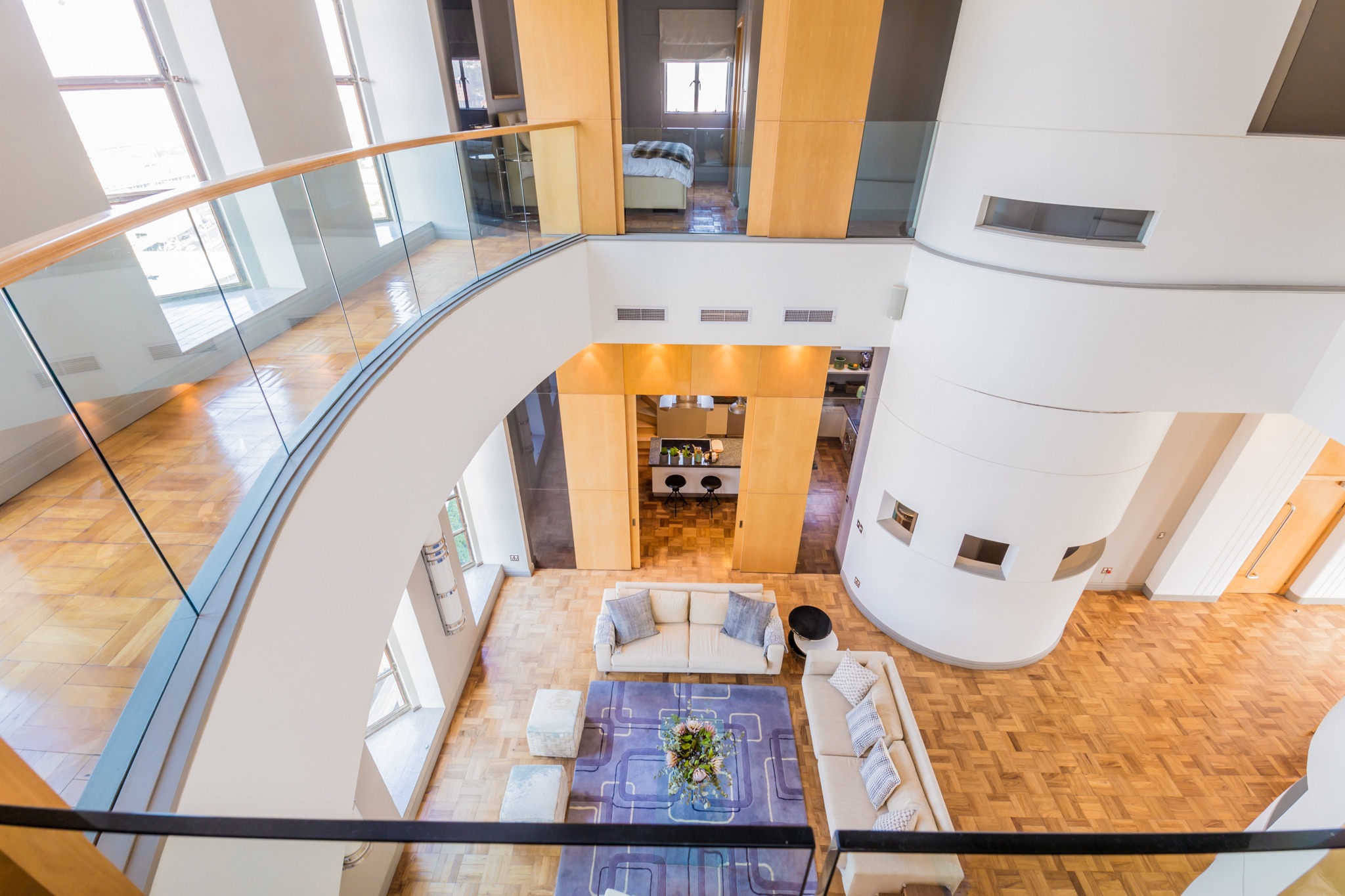 Spread over four floors, this quadruple volume, 374sqm opulent penthouse apartment is a unique piece of architecture, with sweeping views of Table Mountain and the central city, and secure key-controlled elevator access directly into the apartment. Once the tallest building in Africa, this building is a magnificent example of Art Deco decadence.
