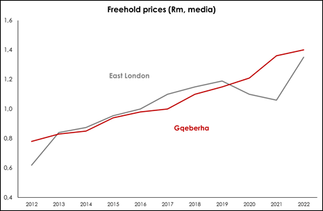 Gordon says with the exception of the years during the pandemic, the prices of freehold homes in both towns have closely tracked each other since 2013. Notably, Gqeberha’s freehold market has seen an uninterrupted increase in median prices over the past decade. “While median freehold prices in East London softened in both 2020 and 2021, a surge in freehold prices during the year to date has almost closed the gap between the two metro housing markets once more. In 2021, East London’s median freehold price was R1.05 million, which this year has risen to R1.35 million, just R50 000 below the median price of R1.4 million in Gqeberha.”