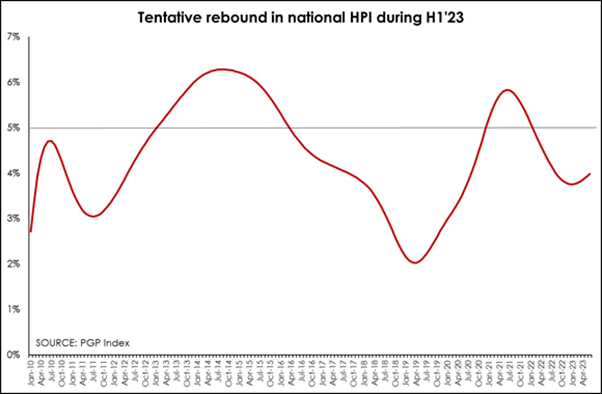 “With sentiment a key driver of the residential property market, a stable interest rate is what is needed to further boost confidence and activity. Positively for homeowners, and according to the latest Pam Golding Residential Property Index, the tentative rebound in national house price inflation continued in June 2023, rising from a cyclical low of 3.75% in January 2023 to 3.98% last month.