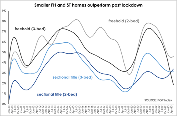From an investment perspective, statistics from the Pam Golding Residential Property Index reveal that smaller, two-bedroom, freehold house prices have rebounded by +4.6% in June, while smaller, two-bedroom, sectional title HPI continues to increase momentum by +3.4%. Meanwhile, larger, three-bedroom, freehold homes have seen HPI slow to 1.9%.