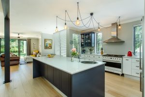 Steel beams were introduced into the kitchen to replace the large wall that had previously closed off the room. Some of these have been left exposed, to add a textural element to the space. Texture has also been introduced with the use of Earthcote Granite paint on a few of the feature walls.