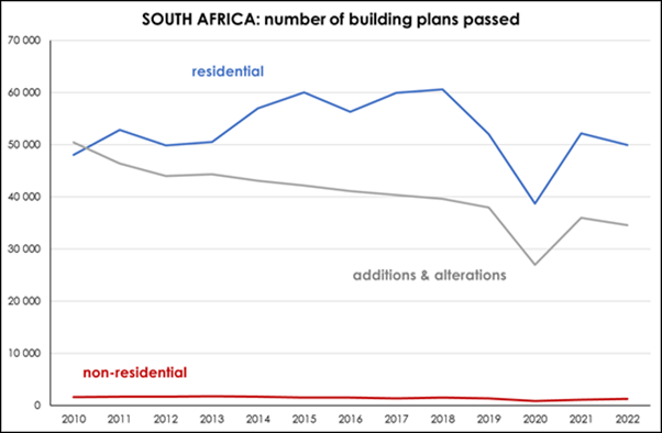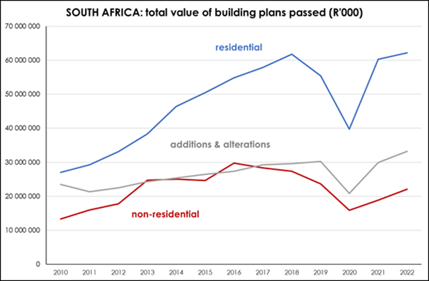 Metrics recently released by Statistics SA, indicate that in 2022 the total value of residential building plans passed in South Africa had recovered to its pre-Covid record, albeit in nominal terms rather than in real terms.