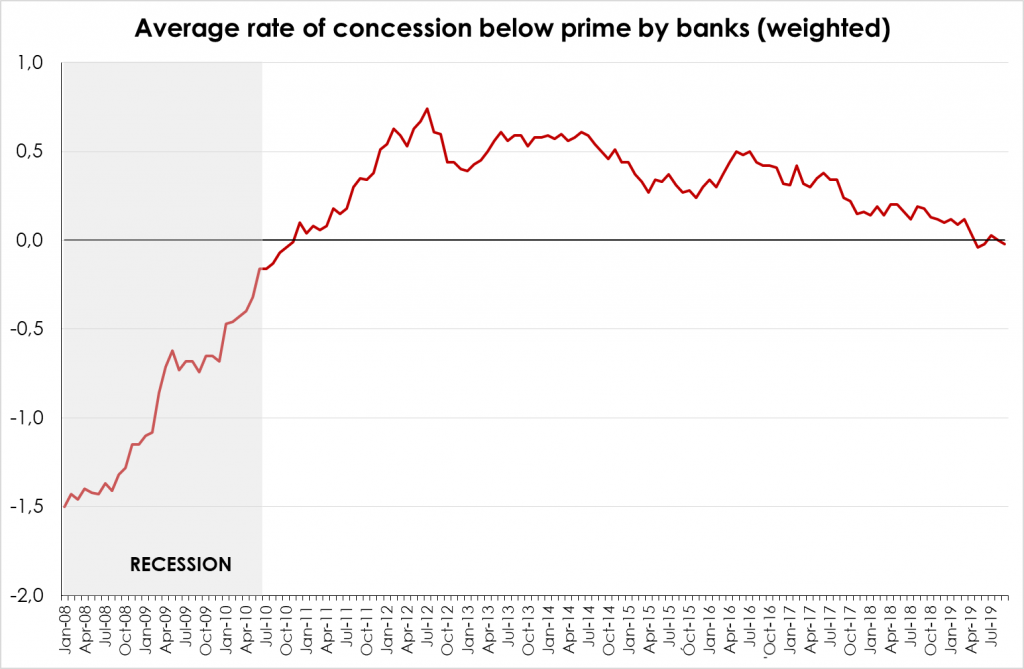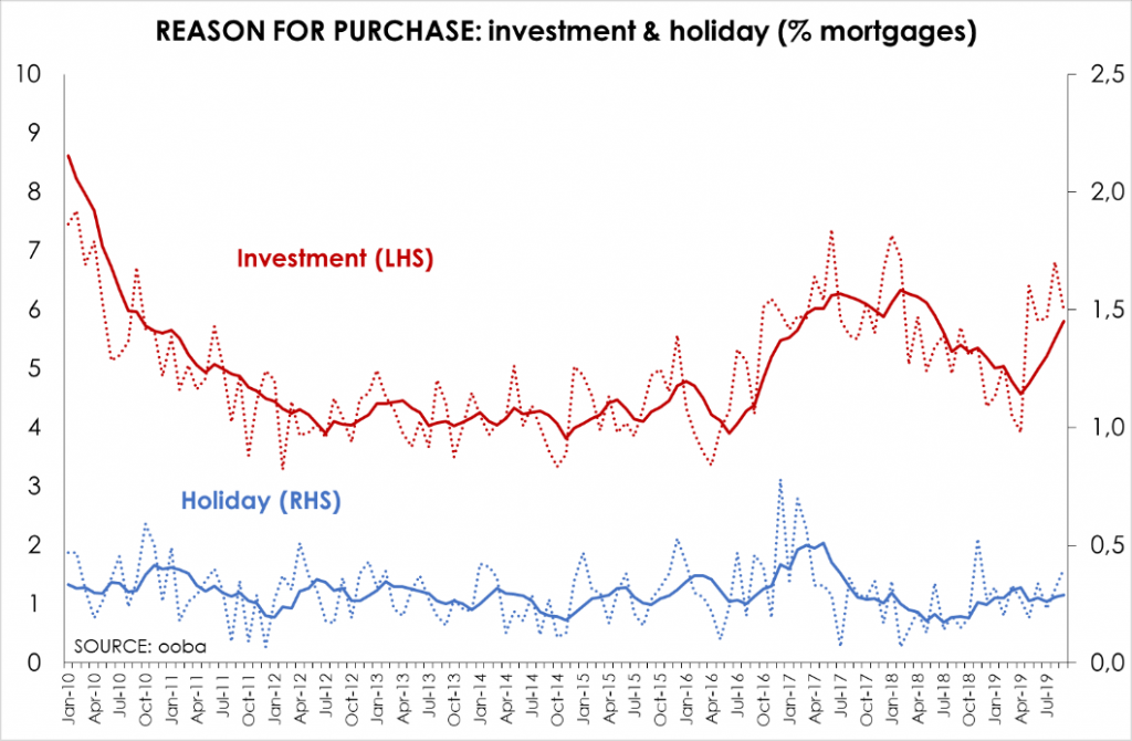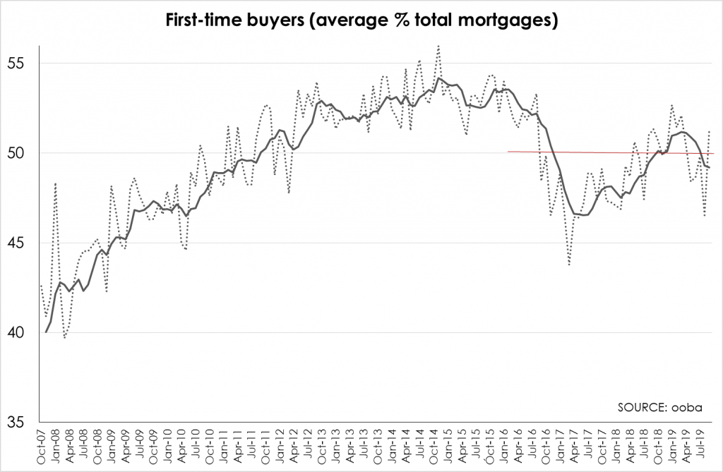 One of the signs of banks’ increased appetite for bank lending is the fact that mortgage advances are growing at a faster pace than house prices (see chart below), suggesting that there are more home loans than before – a scenario last seen in 2012. According to ooba, the average interest rate achieved for its buyers in Q3 2019 was 16 bps lower than in Q3 2018.