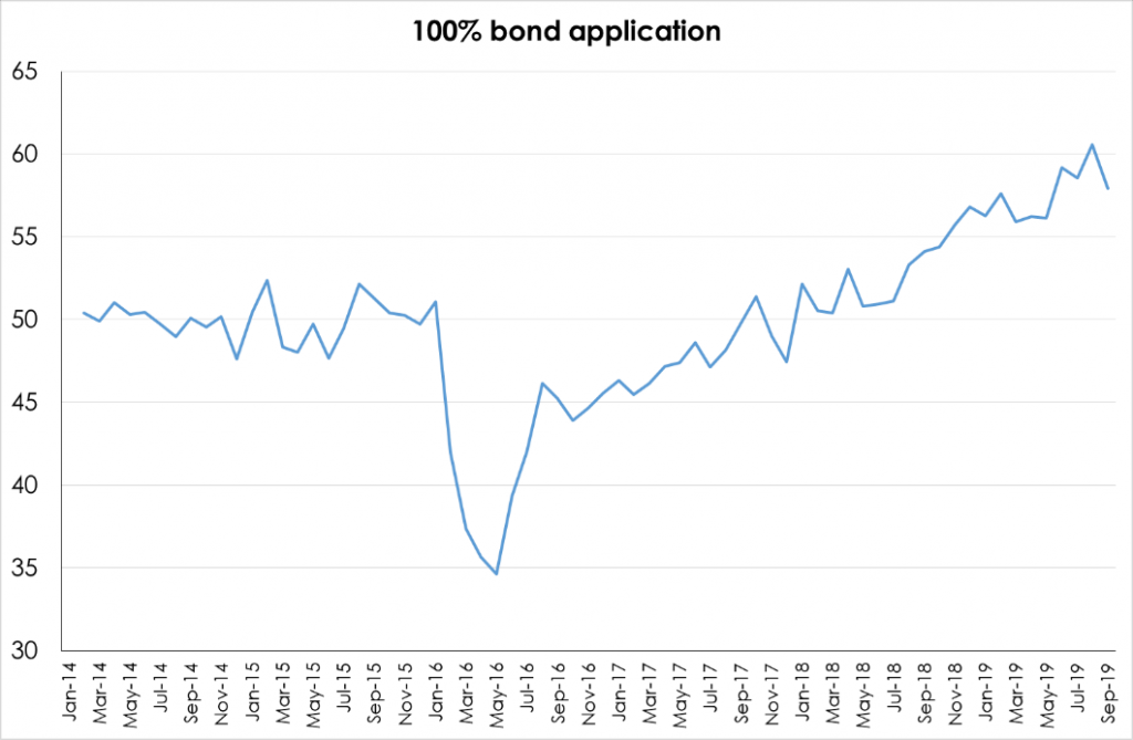 Applications for 100% bonds have risen steadily in recent years, reaching a level of 59% during the third quarter.