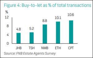 According to FNB, demand for investment properties has been particularly strong in the coastal metro markets – which are the best performing housing markets in SA, particularly Cape Town, with investment properties accounting for 10.6% of all properties sold during Q2 2019.