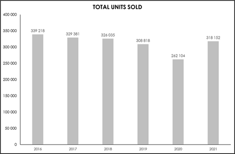 After a sharp drop in residential property unit sales in South Africa in 2020, total unit sales rebounded strongly to 318 152 in 2021, according to Lightstone statistics. This represented a robust 21.4% increase from unit sales of 262 104 in 2020 and a 3.0% increase on pre-Covid sales of 308 818 in 2019.