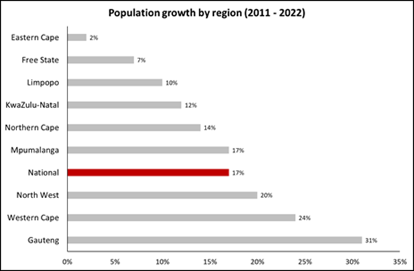 “Not surprisingly, as young adults continue to be attracted to key business nodes to start careers and ultimately purchase homes, population growth – one of the key drivers of any housing market – was strongest in Gauteng since 2011, followed by the Western Cape and North West. These were the only three regions where population growth exceeded the national average.” (See chart above)