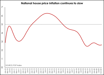 By comparison, house price inflation averaged -2.4% in 2009 during the recession following the global financial crisis (PGP Index registered a decline of -1.8% in 2008).
