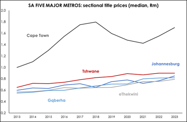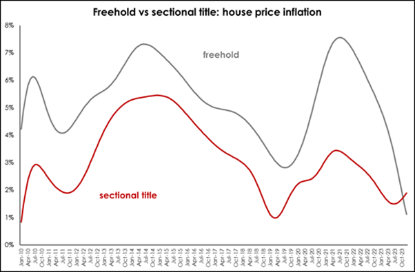 “While growth in freehold prices for the year 2023 averaged 3.2% compared with 1.7% growth in sectional title for the same period, it will be interesting to see if the trend favouring greater sectional title price growth prevails in the coming year.”