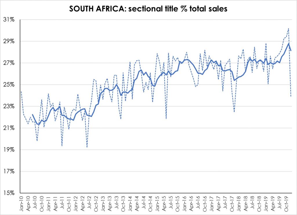 “According to Lightstone data, sectional title units now account for a growing percentage of total sales nationally – rising from an average of 22% of all sales in 2010 to 27.7% of all sales in 2019. This is despite the large number of new, affordable, predominantly freehold homes which are being developed and sold in cities across South Africa which has been adding steadily to the national stock of freehold homes.”