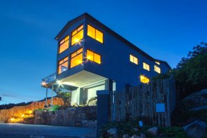 The couple have produced a home that is, quite literally, the stuff of dreams. Seven shipping containers have been successfully welded together to create an elevated, double-volume structure with 180-degree views of the sea and mountain. Initially viewed with some scepticism, the home now attracts curious visitors who often stop to take photographs, or chat with the owners about how humble shipping containers can be repurposed into a coastal architectural masterpiece. Containers are increasingly being accepted as a form of durable building material, and are seen as being on a par with brick for longevity.