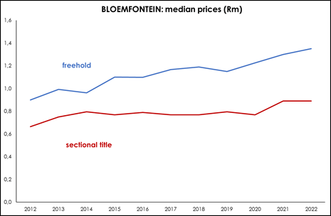 According to Pam Golding Properties Research Department, while almost two thirds (65.5%) of current market stock in Bloemfontein comprises freehold properties, significantly more sectional title homes are selling each year, rising to 58% of total sales (which includes freehold, sectional title and vacant plots) for 2022 to date. (Source: Lightstone).