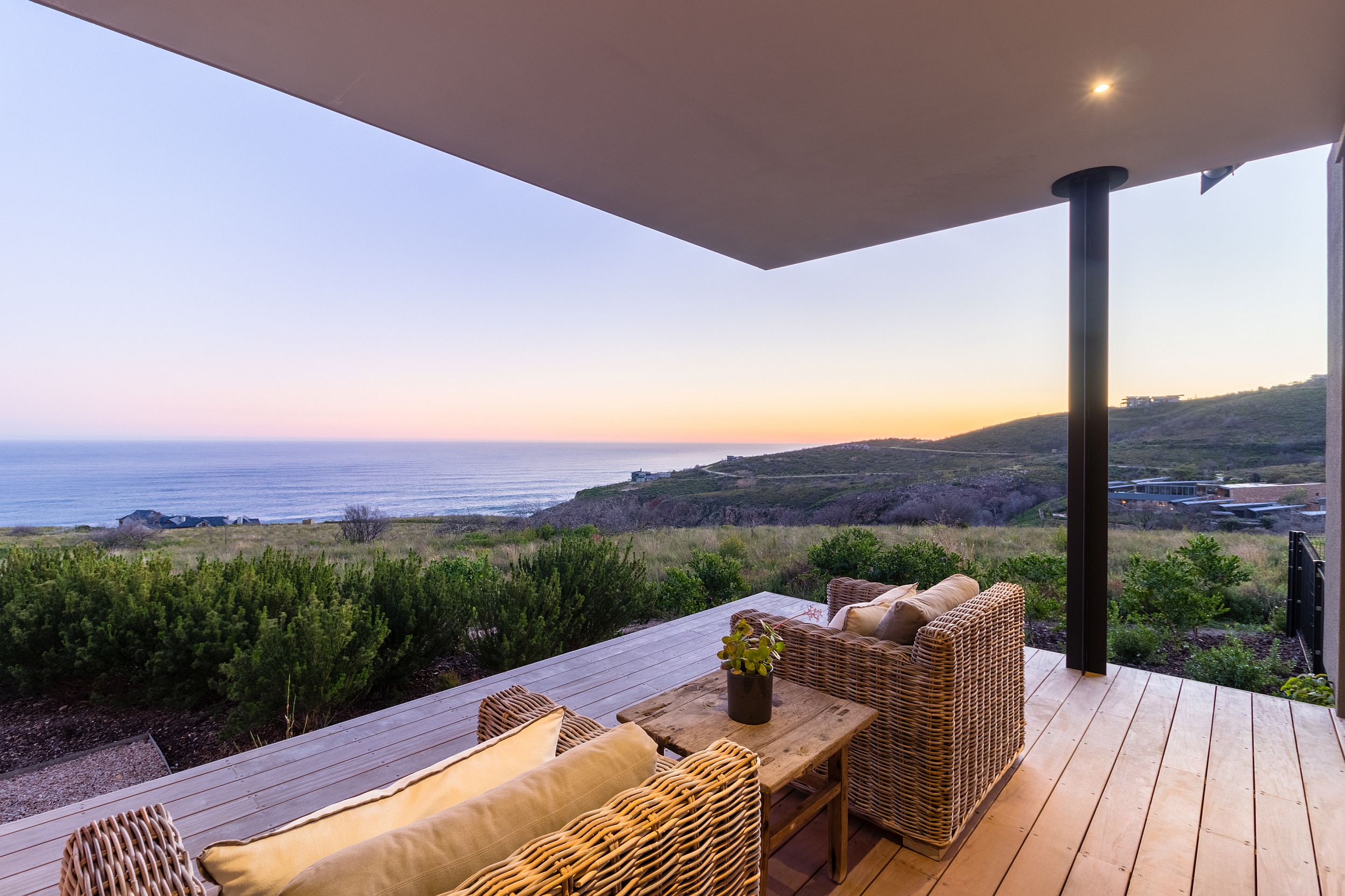 Designed by renowned SA architect Joe van Rooyen, this exquisite home is an architectural masterpiece offering every luxurious indulgence, with three spacious en-suite bedrooms – the main with a large private deck, courtyard garden with a beautiful water feature, study, covered entertainment area and 18m heated rim-flow pool, study on a floating mezzanine, wine cellar, store rooms, six extra-large garages, gym with steam shower and private deck and even a separate dog kennel with heated floors and wash area. Solar heating, air-conditioning, wood pellet fireplaces, imported engineered oak flooring, granite tiles, and rainwater harvesting plus a water purification system, a central vacuuming system and gas-powered generator are just some of the features which cater for every convenience, coupled with understated design and elegance.