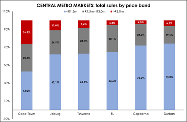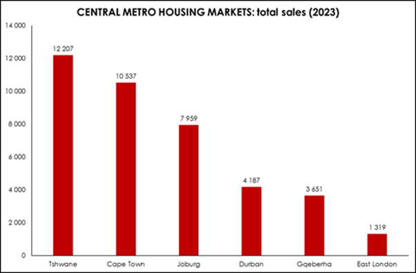 “Overall, during 2023, the highest number of residential unit sales in central metro markets – across all price bands – was recorded within the central metro in the city of Tshwane, followed by Cape Town.