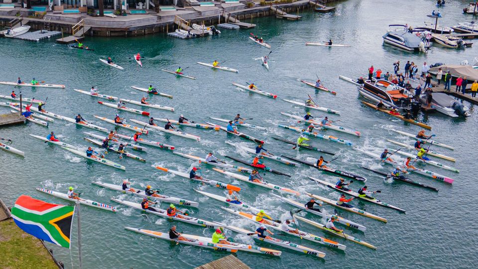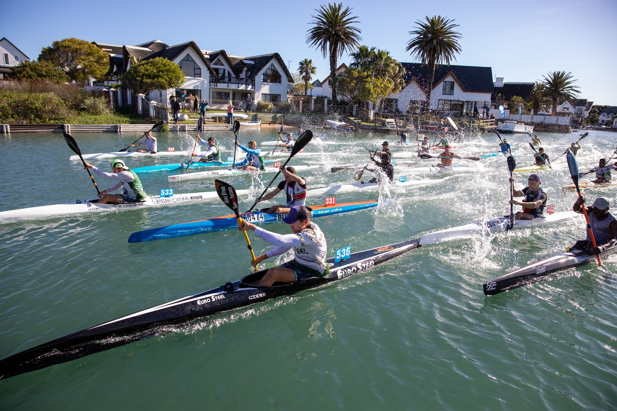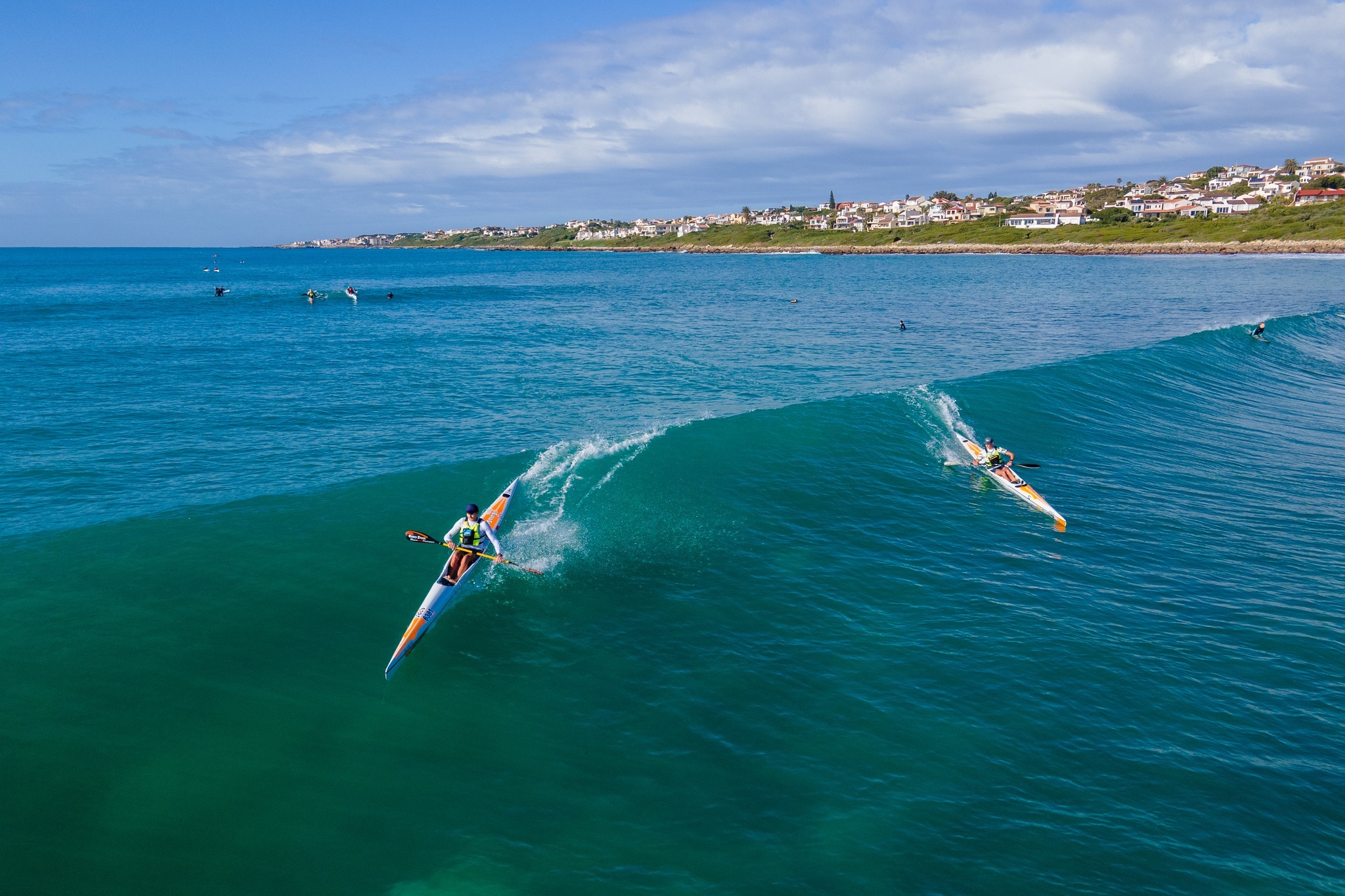 East Cape Marathon Paddling Champs, St Francis Bay : World Champion Andy Birkett unsurprisingly won the K1 … and the K2 with young Matt Fenn. SA Marathon Champs are on 15 to 18 June … also at SA’s best paddling venue! Thanks for pic Gibbo.