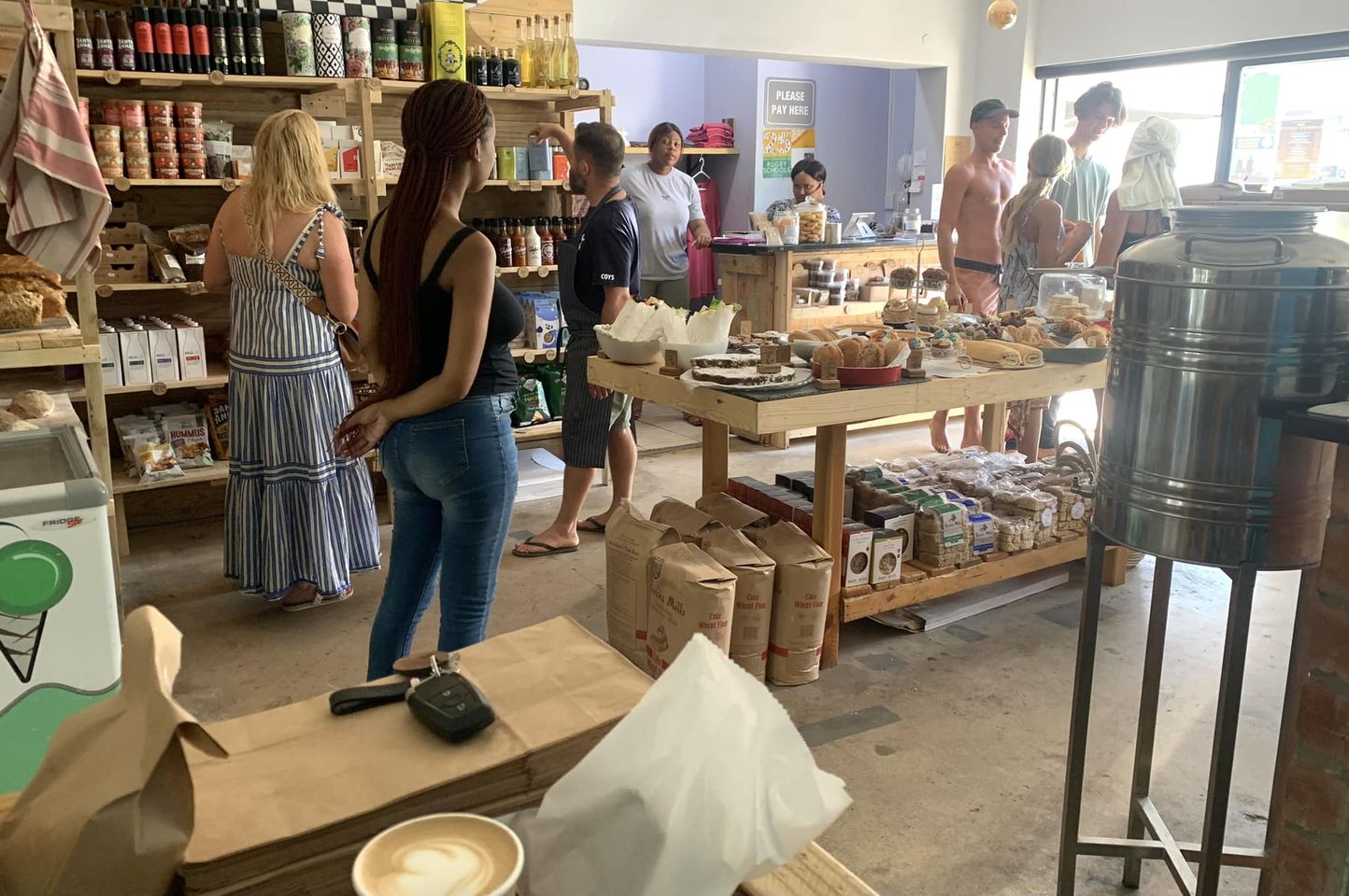 Barry’s St Francis Bakery: world class coffee and bread (rye sourdough is my favourite ). There is Barry this morning giving advice with wonderful Ashley and Porsha behind the counter (and an over-dressed young man) Next door is DeNude with my favourite vegan lunches, and then St Francis Butchery with the very best biltong Out of pic are the barristers.