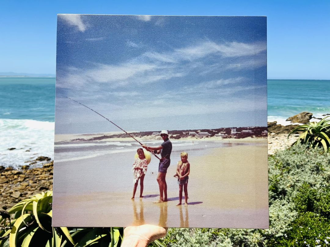 Anne’s beach, around 1970: Janey and her dad and brother, only 100m from their Laura Rd house Note the sand dunes in the background, now Santareme houses