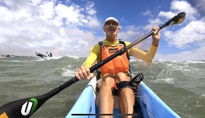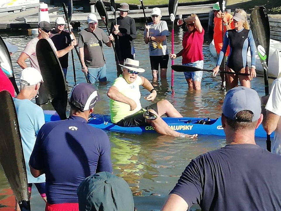 The 15km Sporty Anderson Surfski Race , perfect weather Jasper Mocke, Brandon van der Walt, and Phil Smith took the honours. I came last, the right position for a sweep Thanks Gibbo for the pic