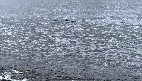 About 20 dolphin cruising past at 7.30 this morning, quite purposeful (not porpoiseful) but not in a very big rush, just on some mission They turned right towards the mouth near Huletts Reef, then we lost them