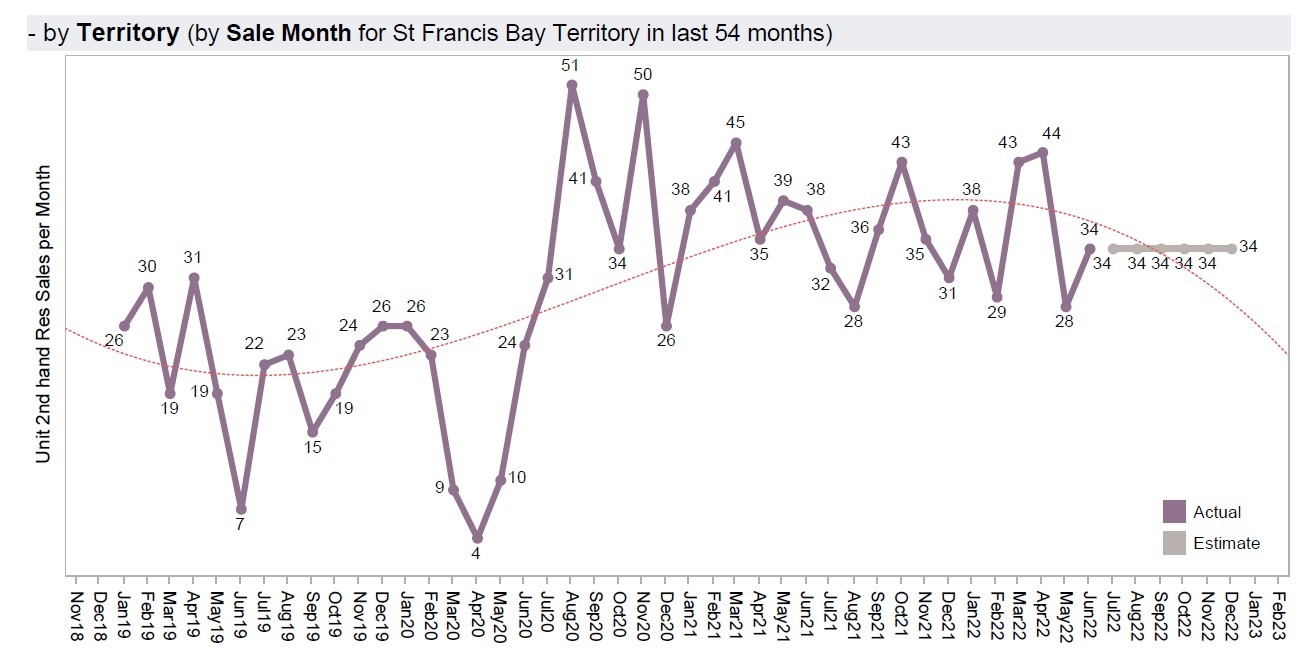 This graph shows how sales in the greater St Francis Bay area doubled from about 20 pm pre-covid to about 40 pm post-covid!