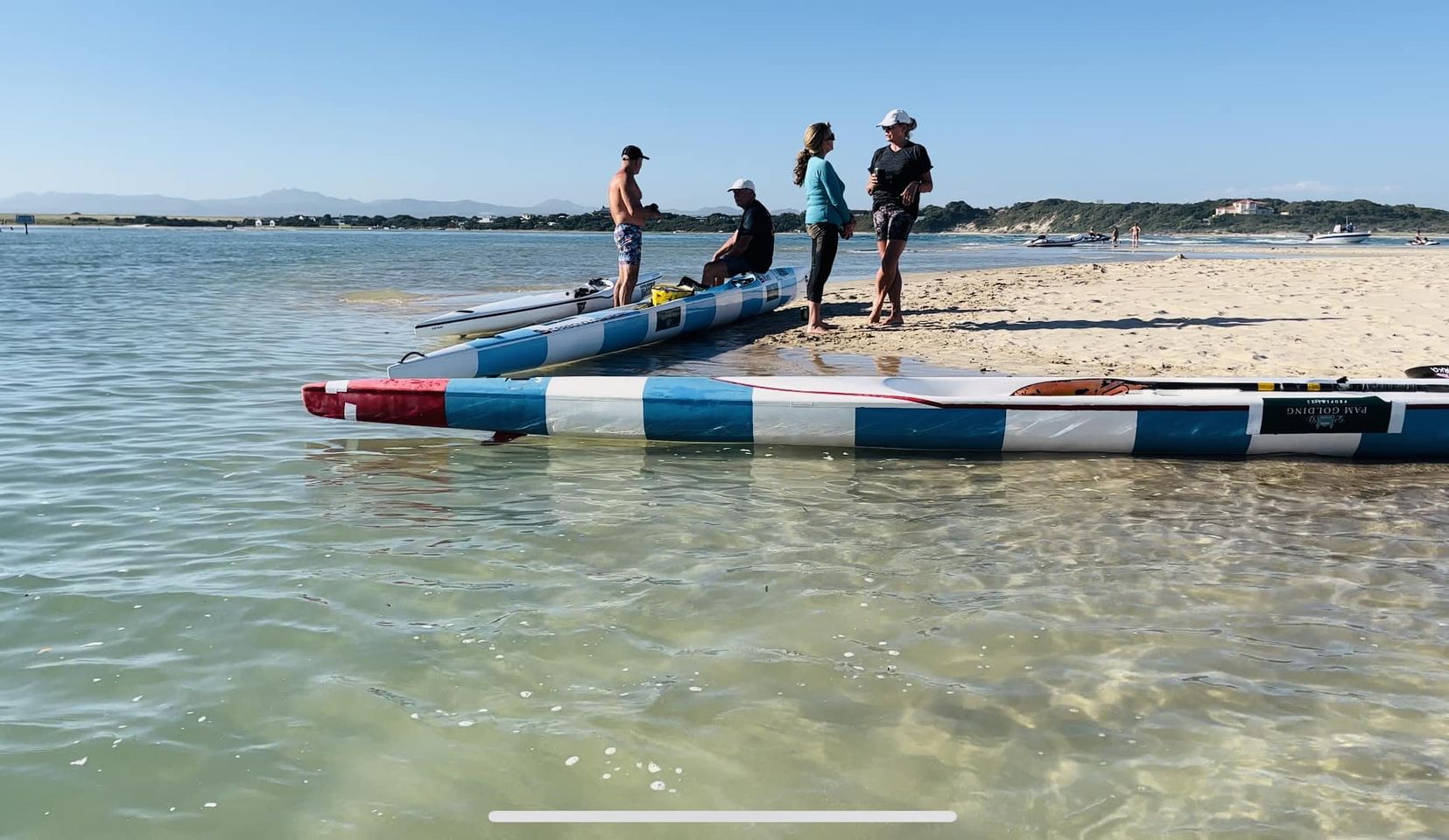 Taking a break at the river mouth this afternoon. Any colour surfski as long as it’s blue and white stripes