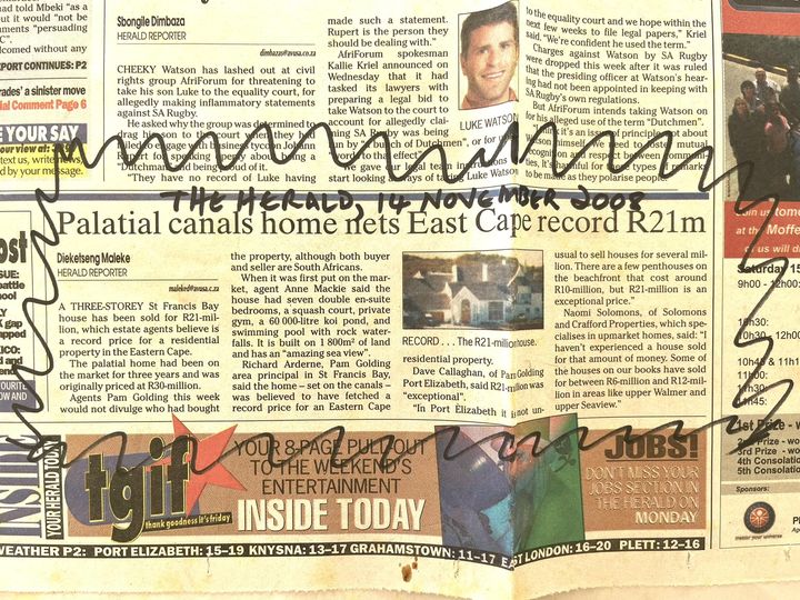 Record price of R21m for a residential property sale in the East Cape : made by Pam Golding St Francis in 2008. This record stood until 2015, when another canal home sold for R23m, which still stands as the record today. Maybe to be broken very soon??
